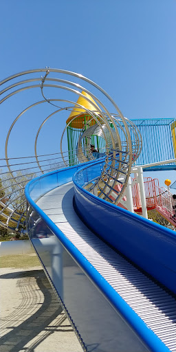 無料で遊べる公園としては岡山県で最大級の大きな公園だと思いました。通常の公園では一つしかない大きな複合遊具が2つあり、子供が大興奮で遊んでくれました。しかも嬉しいことに、人はそれなりにいましたがこの規模の公園にしては混雑しておらず、遊び待ちなどがほぼありませんでした。テントを立てれる芝生スペースもあり、親もどこかのんびりと子供の遊びに付き合っているように感じました。家から遠いことが難点で、近ければ毎週通うことになる公園でした。屋外のトイレは少し古く残念でしたが、近接のB&Gでは綺麗なトイ...