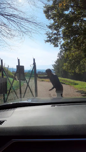 駐車場には動物よけのゲートを開けて車を入れます