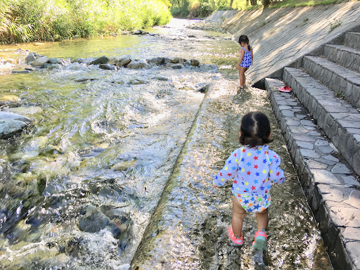 Read moreお盆過ぎの午後に行きました。駐車場は広い無料のところがあります。案内もない場所なので、目指して行かないとたどり着けない公園です笑 近所の小・中学生が川の少し深い場所に飛び込んだり、タモを持って川を探検したりしていました。 3歳と1歳を連れて行きましたが幼児には早いかなと思いました。川に降りられる階段は1箇所で、そこは少し流れが早かったので幼児には難しそうです。別の浅いところで遊びましたが、そこに降りるのも3歳には少し難しそうでした。でも川ではとても楽しく遊んでました。水が冷たく透明で、大人も気持ちよかったです。 川を上ったところにはアマガエルもたくさんいました。 自然を満喫した遊びができるので...