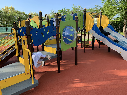 Read more未就学児向けのインクルーシブデザインの遊具があります。 2024年に遊具が刷新されたようでまだ新しさが残っていました。 地面はゴムチップで柔らかく、大型のメイン遊具の他に、馬と鹿が可愛いロッキング遊具、コマのようなぐるぐる回る遊具、砂場があります。 3歳と5歳は、たっぷり1時間半遊びました。 グラウンド、テニスコート、体育館がある総合施設のため、休日は利用者も多く駐車場が混みがち。 近くにあったり、近隣に行くついでに立ち寄るには良いかと思います。遊具のある公園自体は...