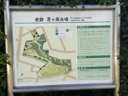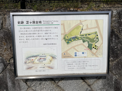 芝ヶ原古墳(しばがはらこふん) 形状は前方後方墳。築造当時の全長不明(前方部が削られているため)、後方部は東西19m、南北21m。築造時期は3世紀中頃と推定。国指定史跡。 芝ヶ原古墳群を構成する古墳の1つ。(芝ヶ原12号墳に該当)
