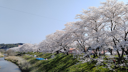 ▼お花見 駐車場は河川敷に3箇所とマルシェリーズへ。 シーズン中の週末にはマルシェリーズ付近でマルシェが開催され、堤防には屋台が立ち並びます。 堤防沿い川の方に降りると、平坦なスペースが十分にあるので、お花見するスペースは...