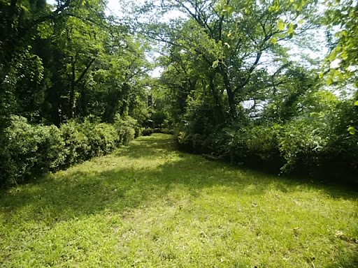 ç»ãè©°ããæ¬äžžè·¡ããã¯ãäžåå±ã®çºäžŠã¿ã奥åºé²ã®å±±äžŠã¿ãäžæã§ããã ãªããæ¬äžžè·¡ã¯ãã³ããç³ãèš³çšåºŠã«çœ®ãããŠãããã®ã®ããŸãšãã«æŽåãããŠãããéç¶ãšããŠãããå¥¥ã®æ¹ã«ã¯çš²è·ç¥ç€Ÿããããã®ããã£ãã