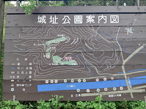 登り詰めた本丸跡からは、三刀屋の町並みや奥出雲の山並みを一望できる。 なお、本丸跡はベンチが申し訳程度に置かれているものの、まともに整備されておらず雑然としている。奥の方には稲荷神社らしきものもあった。