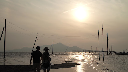 It's a mysterious and charming place that looks like a road leading to the sea. It is beautiful even in the clear blue sky, but it is also nice at dusk. Personally, I like how the road is gradually swallowed by the sea from low tide, so I check the time on the tide table and head for it. (The sight of utility poles lined up in the sea is in full bloom around 2 hours at high tide) This time, with special permission, I took a picture with a drone after sunset. There are quite a lot of cameramen and tourists at low tide sunset. Also, depending on the season, fishermen may be moved by light trucks, so be careful of the people around you when shooting. (Originally built in 1979 for fishermen engaged in seaweed farming and shellfish gathering in the Ariake Sea, where the tidal...