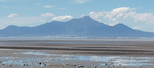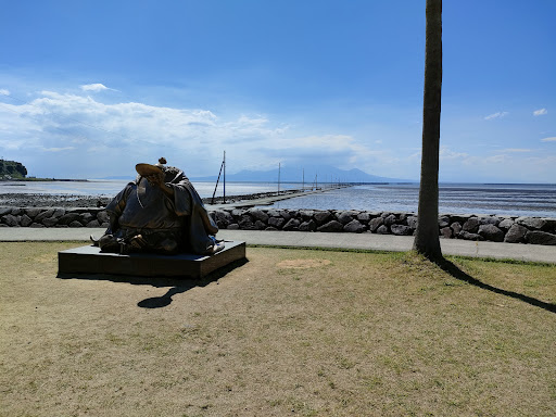この日はとても天気が良く、朝から用を済ませた後、ドライブがてらやっとこの場所に行ってきました! ここは浅瀬で潮が引くと海の中に道が現れる「長部田海庄路」というので全国的にも有名なスポットで、しかも、アニメ「onepiece」の作者が熊本出身という事でキャラクターの銅像が県内のあちこちにあるうちの1つで、ジンベイ像もあります!