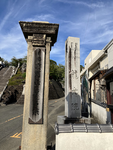 Read more2014/09/16 12:30~13:20参拝。 別格6番札所臨海山龍光院(りんかいざんりゅうこういん)の本尊は十一面観世音菩薩で開基は弘法大師と伝えられている。宗派は真言宗高野派。 宇和島市九島鯨谷(現・蛤)にあった願成寺が、寛永八年(1688)に、同市元結掛の大師堂に移された。さらに明治年間に現在の龍光院に統合されたという。(宇和島日記)よって四十番奥の院と呼ばれる。 真念「道指南」によれば、「城下の入口に願成寺、又はもといぎといふ、由緒有てら也。本尊大師の御影、札を打なり」とある。 まず、到着した駐車場前の正面にある石段は111段ある。108段は人間の持つ煩悩の数。残りの3段は三世を表わす。三世とは今を生きる人間にとって、過去(先祖)、現在(自己)、未来(子孫)にあたる。この111段の石段を踏み登り、本堂に至って大慈大悲の本尊と対面し、祈りを籠め揺るぎない生命力をいただくのである。(石段の説明文より) 宇和島市最古の文学碑として市の史跡に指定されている「椎本芳室の宝篋塔」。これは大阪の談林派俳諧の宗匠椎本芳室(1664~1747)の長寿と功績を讃え、四言六句の詩を刻した寿蔵(生前建立の墓)で、延享3年(1746)に建立された。 芭蕉の句碑。 「父母の志き里に戀し雉子の聲」 この句碑は弘化2年(1845)年に建立された。芭蕉が高野山で詠んだ句である。なお蕉門の俳人服部立芳「芭蕉翁伝」によれば、芭蕉の母は伊予宇和島の出身であるという。 「芭蕉忌や母...