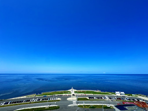 ラッキーなことに高台にある宗谷岬灯台に登れる日だったので登らせていただいた ここまで視点が上がると水平線の位置もかなり遠くなり、広範囲に見渡せるようになる 少し霞んではいるけれど… うっすらと見えているのが樺太 北海道がいかにロシアと近いのかがよくわかる