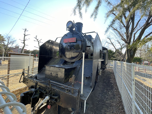 私がここを訪れたのは、かなり以前に数回、過ぎゆく列車の窓から見えたSLを間近で見てみたいというテツ願望に他なりません。場所は線路沿いなので分かりやすく道すがら走り抜ける多様の車種を楽しめます。ご対面したC11(あの有名な新橋駅前の戦時型蒲鉾ドームと同じ)は見るからにカゴの鳥状態で写真撮りづら!盗難やイタズラ防止以上に小さなお子さん連れの多い公園なので腕白キッズが無茶して怪我をしない様にとの配慮かも… その昔「ケガと弁当・自分持ち」(自己責任)が当たり前の頃は運転台の屋根上によじ登るわ、煙突からすっぽりボイラーの中とか焚口から火室に潜り込んでかくれんぼ等々やりたい放題♪今節、事故が起きれば管理箇所が訴えられるので致し方ないのですが、敷地は広いので柵の内側にもう少し余裕があればグーだったのに…少々残念。保存状態は近年化粧直しした為良好!ナンバープレートも黒地に戻され自然な姿に(赤は本来主に中京以西で指定された車両に塗色)幼少期与野在住で蕨付近走行中の車窓から「見てごらんヤエモンがいるよ」と父が指さす先に塀の中、電車群に混じり小さなSLが煙を上げていた光景を覚えています※ヤエモン=当時教科書に現在大宮の鉄博保存車1号機関車がモデルの話があり主役SLの愛称は小型SLの代名詞でした。かつて蕨には日本車輌の工場があり電車の製造などを行っており場内移動専用のSLがいました。話が“脱線”気味でスミマセン(_ _)...