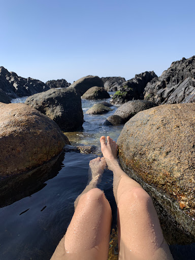 Middle pool is quite hot, two side pools mix with sea water for a warm experience. Pool on the right when facing the sea has some sharp rocks and flat rocks are slippery. Was painful walking there! Pool on the left is flat rocks, all quite slippery, easier to walk in.