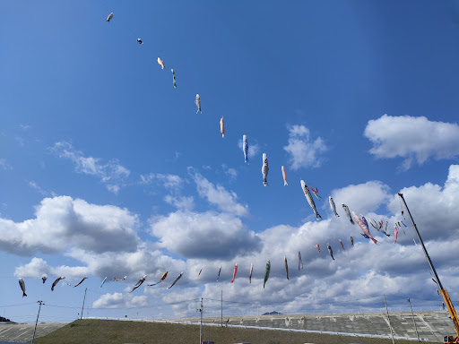 こどもの日が近くなると、写真の通り近くの建設会社さんが鯉のぼりを掲げてくれて、子供...