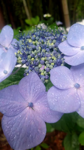 梅雨のしっとりした空気に雨露をまとった紫陽花はこの季節の醍醐味。 苔生した階段も風流なのに加え、落ち着いた竹林をバックに可憐に咲く紫陽花の数々に魅了された。 帰り道の紫陽花ではハートを彷彿させ...