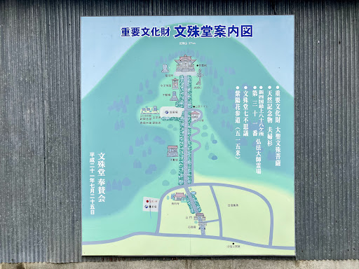 今回は、1番下からあるいて寺まで歩きました。前述したように、約500メートルほどの距離があるようです。勾配があり意外と疲れました。秋の始めごろに訪れました。 参道は緑豊かで竹林などもあり綺麗でした。 道中に山形市指定天然記念物の「文殊様の夫婦杉」もり、杉の根っこが二方向から伸び一つの杉になっていました。自然の凄さを感じられる杉でした。