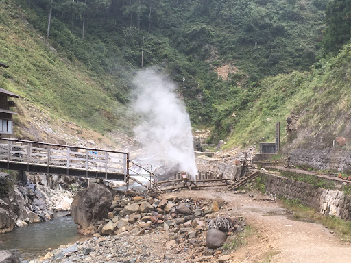 We came across Jigokudani Funsen Fountain while hiking to the famous onsen monkey park, and it turned out to be an unexpected highlight of the trip. This natural hot spring geyser shoots steam and boiling water into the air, creating a dramatic and almost otherworldly scene in the middle of the forest.