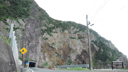 Read moreこのヤバさはその目で見ないとわからない! 断崖絶壁の上の方まで施工された法面工事、作業者はどんな勇敢な戦士だったのか…😵 この路線は過去こんな断崖絶壁をクリアするため峠に迂回したり無理やり海上近くを走っていたようですが、今やトンネルばかりになり便利な反面、旅情は減ってしまったかな?😅...
