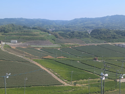 It has a very nice view. Surrounded by large tea plantations, the view is also great. You can also see the Ariake Sea in the distance.