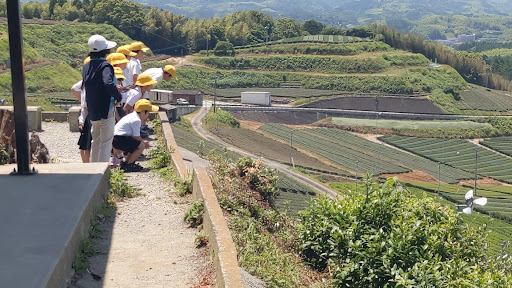 スカッとした五月晴れではなかったのですが、一面に広がる茶畑は、圧巻です。 5月末なので、2番茶の摘み取りでしょうか? 近隣の小学生も校外学習にやって来ているようです。 遠くに釈迦岳や御前岳も見えてます。もっと晴天に恵まれていたら、有明海も見えてたかも? 素晴らし眺めに年甲斐もなく ブラ...