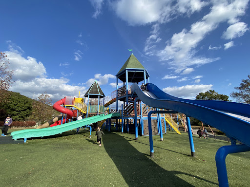 This is a great family park. The playground is large and well suited for older toddlers if you’d like them to play alone. It is plenty big enough for parents to run around with younger kids too though.