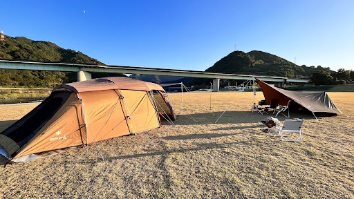 Read more3月5日、最高気温17度、最低気温5度の日にファミリーキャンプでお邪魔しました。 利用料が無料、予約不要、トイレと流し場があり、夏は水遊びができる芝の綺麗なキャンプ場ということで、好条件のキャンプ場になります。 当日はかなり冷えましたが、インナーシートとラグ、電気毛布と布団一式で底冷えを感じることなく眠ることができました。逆に日中は木陰など太陽光を遮るものがありませんので、むしろ暑いくらいでした。 これから気温が上がる春~夏は、タープの使用や着ていくものに工夫が必要です。 一方で、使用して感じた注意点があります。 ①イベント利用日がわかり難い キャンプ場の空き状況はホームページで事前に確認することができますが、肝心のホームページが非常に見づらいです。また、宿泊日の翌日がイベント利用日の場合、早朝から退出をお願いされることもあるので、滞在日から翌日まで空いているかを確認した方が良さそうです。 ファミリーキャンプであれば、市の管理課に直接電話問い合わせが確実だと思います。 ②山風が強烈 当日は風速1~2mの穏やかな予報でしたが、河川敷ということもあり、夕方から朝方まで球磨川上流からの山風が強烈に吹いていました。体感4~6mくらいでしょうか。 当日は最低気温5度ということもあり、夜8時くらいからとても寒く感じ、テントの隙間から風が入ってきて余計に冷えました。 テントの向き、固定については考慮した方が良さそうです。 ③電車の音が激しい キャンプ場には鉄道橋と高速道路が横断しており、鉄道には終電があるが、高速は夜間でもトラックが走り騒音がするだろうと鉄道橋付近にテントを張りましたが、これが誤算でした。 鉄道は夜間~夜中でも貨物が走っている上に、鉄道橋は通常の線路を走るよりも遥かに大きな音が出ます。さらに、八代駅方面からくる場合にはトンネルを抜けてキャンプ場に近づいてくるのですが、これがメガホンのような働きをするのか、かなり遠くからでも大きな音を出して近づいてきます。 風によるテントの擦れる音、川のゴウゴウとした流れる音、鉄道と高速の走行音と賑やかなキャンプ場なので、気になる方は耳栓等の工夫が必要かと思います。 ④ちょいトイレ遠い BサイトやCサイトからはトイレが結構遠いです。 これは仕方がないので、補足程度に。