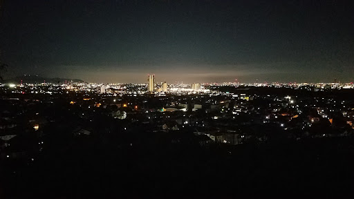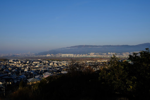 Read more高台の住宅街にあるユニークな公園。山を切り開い て住宅開発した時、その一角を残して公園にしたの ではないだろうか?そのためか家くらいの大きさの 岩が三つほど中腹に残っている。大地震で動き出し たら大ごとだ。この公園のユニークさは高さが四段 階に分かれていること。まず入口付近(ここへ来る までが大変。車、単車、電動アシスト自転車が必須 、ママチャリでは上がって来れない。スポーツバイ クでも65歳の足ではやっと、ほぼ限界。)狭いスペ ースに自販機とトイレがあるが、目を引くのは斜面 を利用したボルダリング風の遊具?これは他では見 たことない。二段目は藤のない藤棚風のベンチスペ ース。落ち着いてゆっくり休んでいける。三段目は 狭いながらも広場にテーブルとベンチが3セット。 樟葉の高層ビルや淀川も見渡せる絶好のピクニック スペース。お花見季節は近所の人の特権だろう。四 段目は正に展望台。樟葉、八幡、淀川、大山崎、島 本町が一望できる。本当に近場の人しか知らないよ うな公園で、これほどの光景にお目にかかれるとは 感動モノだ。驚いたことに開けた眺望の反対側には 直ぐまじかに住宅が連なっている(ほぼ山のてっぺ んなのに)。小さいながら別の公園まである。枚方 に住んでいる私も全く知らなかった公園...