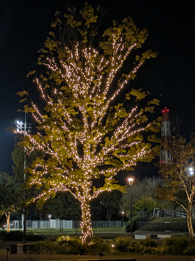 Starbucks, biggest park area in the city (lots of trees killed for that!) restaurant, trees, shaded benches, shaded circular walking/jogging track, beautiful new fitness complex with showers but no water fountains, great soccer fields, track and field area, playground, plenty of outdoor washrooms. No pool, no tennis and no tolerance for people who want to ride around the park on bicycles. There are two bicycle...