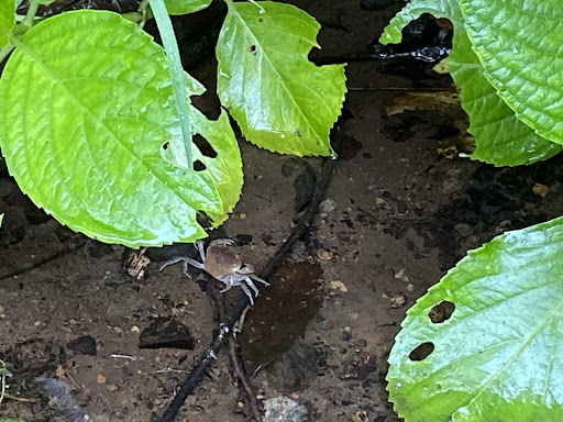 2024/10/17 季節的に草が生い茂る時期なので、せっかくの小川はあまり見えない。 ここへの入口は3ヶ所有るようだ。全部一気に見るため、ハンズゴルフクラブ西側の駐車場横の細道から入った。 すぐに階段を下りて畑道に出る。この当たりは蛍が生息しているらしい。 しばらく行くと、道から外れた所に東屋が有る。そこから戻り川に沿って先に行くと、途中から道路は石畳になる。その後ハンズゴルフクラブ東側から来る道(ハンズパオ脇の道)と合流する。(小川は何処に行った?)