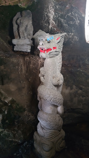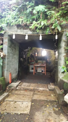 岩穴の岩盤から水がしたたり落ち、洞穴の中で細い水の道を作っている。ジュンサイにかけるドレッシングだろうか? 龍神はベジタリアングルメなんですかね。微妙にひんやりとした場所で、夏季はなかなか素敵かもしれません。