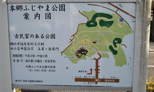 Read moreJR本郷台駅から徒歩20分程度の場所にある公園です。一応、駐車場もあります。駐車場は夜間の利用ができません。公園には夜間も立ち入り可能です。主な入り口が3箇所ありますが、どこから入っても、坂道だらけです。古民家側(鍛冶ヶ谷方面)から入るのが、最も風情があります。恐らく正しい入り口は、上郷側の住宅街方面からなのだと思います。その他、駐車場や弓道場のある、栄中野方面から入る事もできます。但しこちらからだと、獣道に近い山道を通らないと、古民家方面には抜けられません。内部もほぼ坂道ですが、所々、広場やベンチ、また古民家近くに公衆トイレもあります。このトイレは夜間も利用可能です。秋の季節に自然を感じるのには、適した公園だと感じます。通ってい...