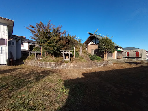 2023/11/14 富士山神社に来ると、社殿の横に西谷富士が見える。数m程度の高さの人工塚だ。その麓には、浅間神社/先達之碑/山王社/大六天社/歳神/小御嶽神社、が有る。 塚の周りを見ると、北側に上り口が有る。約半周ほど、獣道程度の細い螺旋道を上がると、頂上に着く。そこは石で囲まれていて、中央に”木花咲耶姫(このはなのさくやひめ)”が鎮座する。ここからの眺めは、邪魔物が無い。高さはそれほどではないが、狭いので結構怖い。下りる時はよりバランスを崩しやすく、ふらつく人は登ってはならない。体を支えるものは無く、雑草を掴むしかない。 では、塚の麓を一つずつ記す。(一通り見てわかったが、ここは丸星講の碑が占める) ①石碑 先達之碑 「@ 先達之碑 〜中村音吉/苅部亀之助/白井民五郎/中村與七 〜講社・大正九年庚申四月十五日建立」 ー1,920年建立。@は、山に◯星の”丸星講(まるぼしこう)”のロゴ。知る限りでは、東京都江戸川区の富士講。