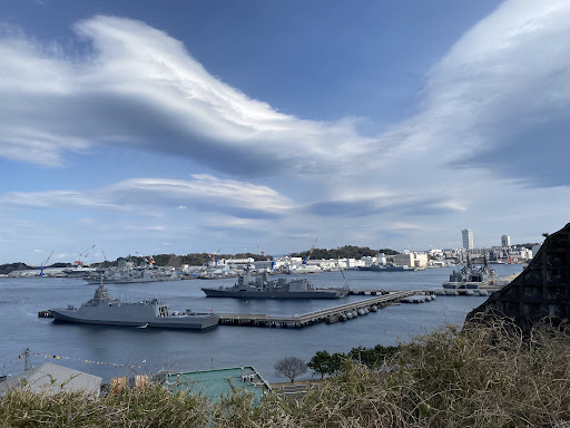 それでも、眼下に広がる横須賀港と艦船たちの姿は、ここに来ないと得られない眺めです。ヴェルニー公園など他の観光地からは見えない角度の艦船が見られるという点で、軍港の街を訪れた証のような特別感があります。外国から来た私にとっても、こうして日本の中にある「米軍と自衛隊の拠点」を一望する体験は、まるでドキュメンタリーの舞台裏を覗いているかのような感覚で、とても新鮮でした。