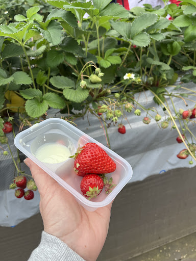 Read moreWhat a wonderful spot! Freezing cold outside on a rainy April day, but the green house was warm and the staff were happy and inviting. A very fun activity for school age kids and older. You need to listen to how to pick the strawberries so it may not be great for toddlers if you can’t supervise them well. 2200¥ for adults for 30 mins of picking and eating (with condensed milk!) as much as you want. You can purchase a pack of strawberries to take with...