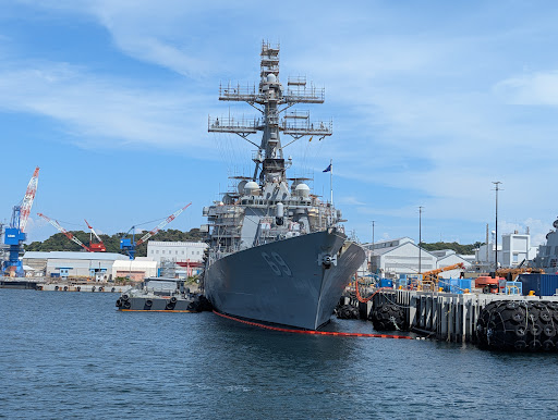 The tour takes you between the bases of the Maritime Self-Defense Force and the U.S. military. There are many destroyers and, depending on the time, a U.S. nuclear-powered aircraft carrier. (The second picture) The George Washington is there now. You can also see a submarine.
