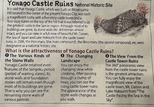Read moreImpressive ruins very close to town and the route from the station to the ruins goes through many historical building and sights. There are many stone steps to get up to the ruins, but there are bamboo poles at the base for you to use if you like. Return once you come down from the top. It would be lovely in Sakura season, but it was also nice in autumn. At the top there are benches and an undercover seating area. There are info guides and maps. It’s 10- 15 mins to get up, depending how “stair fit” you are. You can descend a different way...