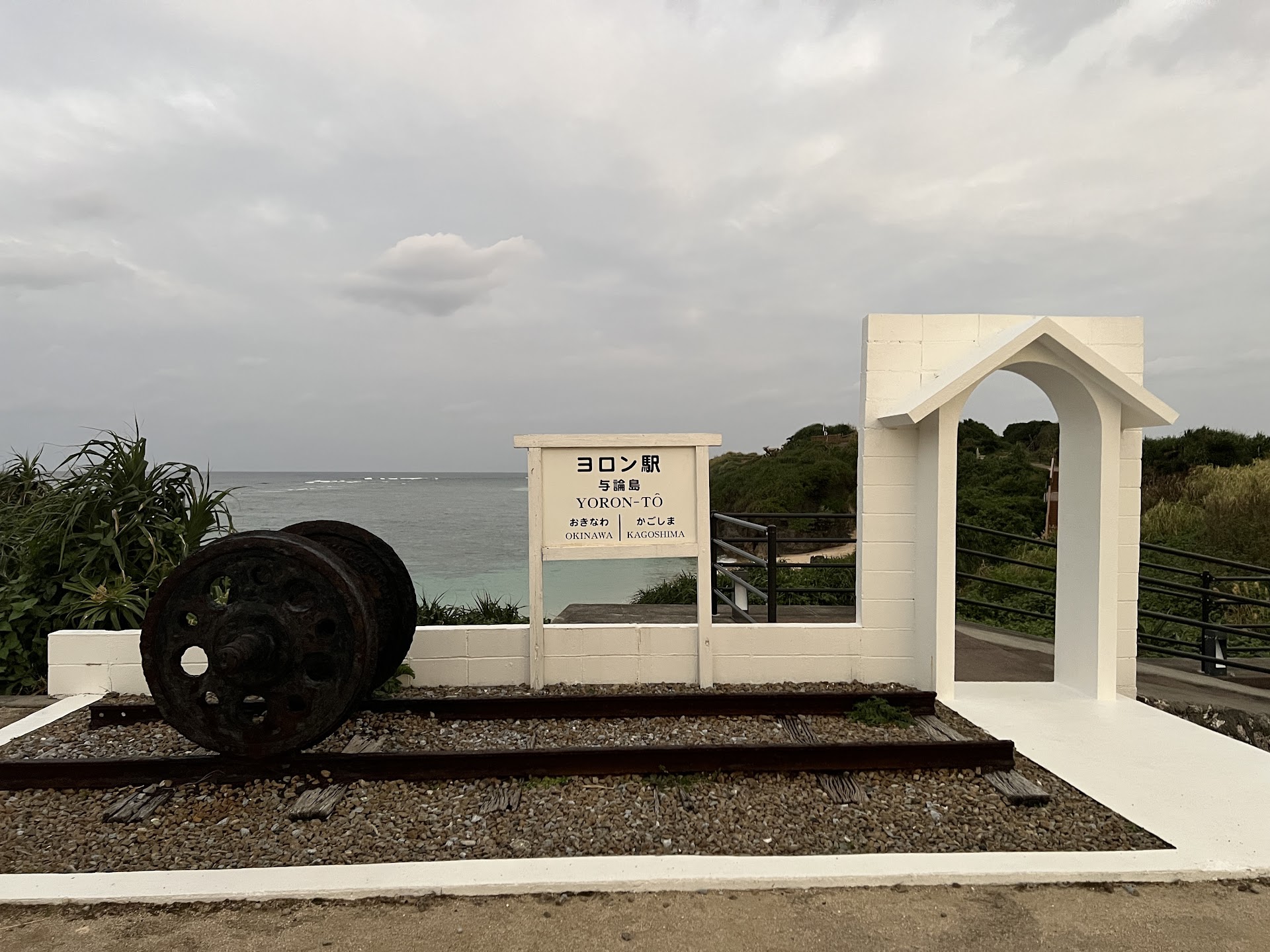 Read moreヨロン駅は、与論島に鉄道がないにもかかわらず存在するユニークな「駅のモニュメント」です。正式名称は「天の川銀河鉄道本線ヨロン駅」で、短いレールと車輪、駅名標が設置され、まるで本当に列車が来そうな雰囲気を演出しています。 駅のすぐ先には「フバマ」と呼ばれる浜が広がり、背景にはヨロンブルーの海が輝きます。天気の良い日には沖縄本島まで見渡せることもあり、夕暮れ時には海と空がオレンジ色に染まる絶景が楽しめます。 ここからは供利港まで続くビドウ遊歩道があり、断崖沿いの景色を眺めながら散策できます。空港や港から近く、旅の合間に立ち寄りやすい立地も魅力。観光スポットとしては小規模ですが、与論島らしい遊び心と景観美が詰まった場所です。