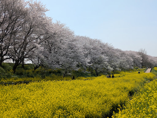 Read more2025.4.8(火)初めて訪問。桜と菜の花の美しさに息をのみました。本日満開。風が吹けば花吹雪の状態でした。行っていない人は急いだほうがいいです。幸手の権現堂より迫力あると思いました。公園と有りますが、文覚排水路沿いの遊歩道と堤の上の遊歩道全体を公園と称しているようです。ブランコが有るような公園ではありません。全長1.8kmの遊歩道に、500本のソメイヨシノ。川沿いには無数の菜の花が咲き誇っています。凄かったなあ。注意点ですが、公園内にベンチが有りません。座りたいならシート持参が必要。堤の遊歩道の中程に歩道橋があり、その下部にトイレと飲み物自販機がありますが、全て売り切れ表示でした。飲料持参が良いでしょう。テキ屋さんの屋台はありません。駐車場は、県道33東松山桶川線の中途に「さくら堤公園」の看板がありますが、その看板周りで5台ぐらい。そのまま堤上道路に進入し、河原方向左側に降りると、40台ぐらいの駐車場があります。公衆トイレもありました。降りる道路は幅員狭く、行き違い困難。目線で譲り合いましょう。平日だからか誘導員はいませんでした。あと「吉見町東公民館」の駐車場も利用が可能なようです。注意看板など有りませんでしたが、公民館利用者以外は駐車不...