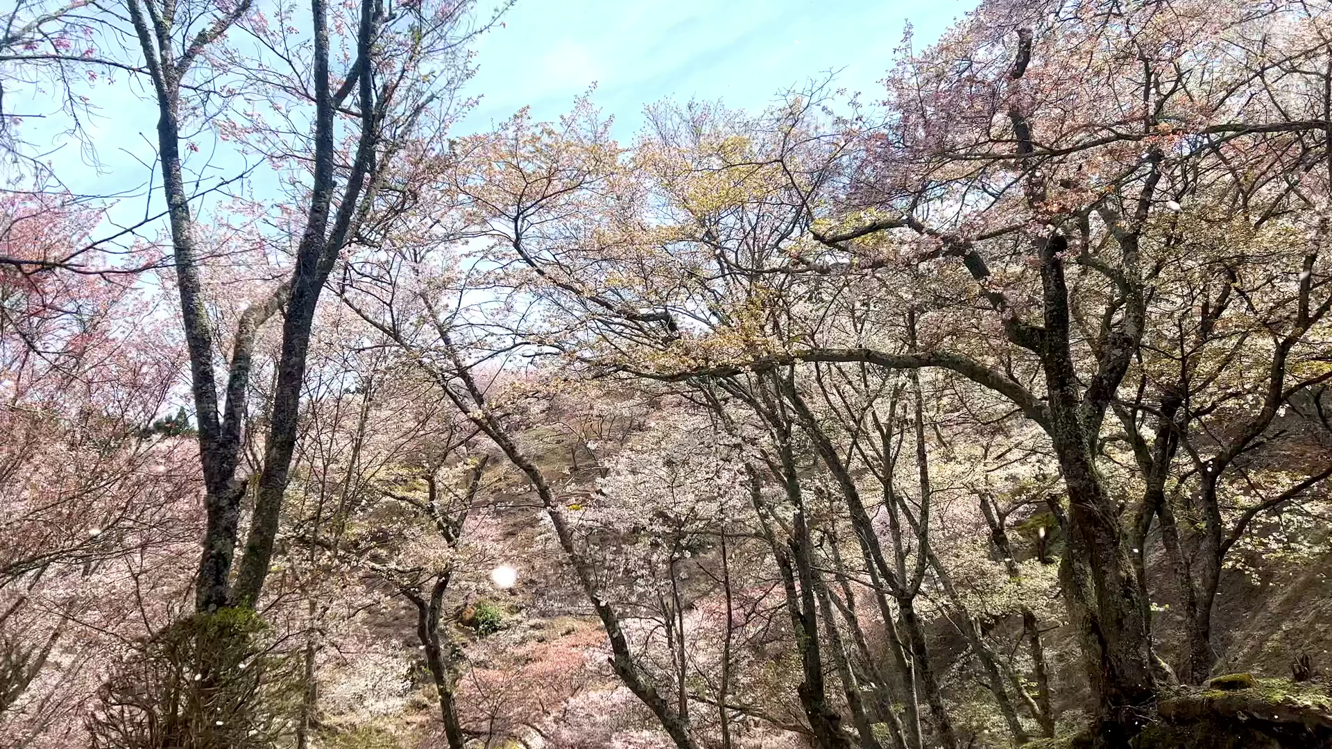 Yoshinoyama's cherry blossoms typically start opening in late March or early April and reach full bloom around early to mid April. Because of the range of elevation, the blooming season is staggered by a couple of days between the Shimo (lower), Naka (middle) and Kami (upper) Senbon areas as the blossom front gradually moves up the mountain. The trees in the Oku Senbon area open considerably later.