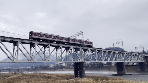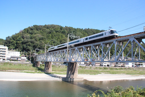 近鉄吉野線、大和上市駅と吉野神宮駅間の吉野川に架かる長大な上路式トラス橋単線橋です。吉野の自然に溶け込んだダイナミックな橋です。上路式なので遮るものがなく、走る電車の全貌が見えます。電車も急行が30分に1本、特急が30分~60分に1本ほど走っているので、上下合わせるとシャッターチャンスは多いです。急行はお馴染みの赤白ツートンの近鉄カラーですが、特急は色々な型式が走っていて楽しいです。両駅から徒歩で河畔の道路へすぐに行けますし撮影ポイントは幾らでも見つかります。