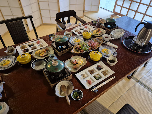 Read moreThis is a very traditional Japanese Inn, where you sleep on futons in a tatami room. Meals here are served in courses. ||This place really deserves all the praise for it winning me over in food, lodge and hospitality.||The bad: The only bad thing is that as this is a traditional inn, there is no elevator, which means my dad with mobility issues had to take the stairs. But the staff was there all the way with him to ensure his safety. ||The good: Upon arriving, we are ushered into a waiting room where we are served these amazing sweet potato cakes and tea. The staff then asked if our group had any food allergies so that they may make customized changes for the individual (we had 1 non-seafood guest). The food for both breakfast and dinner were so extravagant and the staff even gave us a detailed description of what was used (mainly locally grown produce) and how to enjoy the food (*the English explanation is a bit more limited but our service staff did her best). ||The onsen was really great what with a small outdoor area that you can cool yourself off if you think the indoor is too crowded or hot. There is 4 different onsens and you get to try all 4 (if you have the time) as they will switch around both male and female located on lvl 1 and at the basement. ||My biggest praise though was that we left a bag of goods that we bought from their gift shop when we left. And by the time we realized it, we were back in our country. We corresponded with the hotel to have them send it to us and that we would foot the freight charges. But they not only sent it back really quickly, but paid for the shipping! Forever grateful for their service and the experience staying there. ||We will...