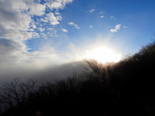 「星ヶ山公園」の山頂からは湯河原が一望できるのですが・・・当日は下から見上げると霧で覆われていて上に登っても何も見えないかも?と言いながらも車を走らせいざ「星ヶ山」へ・・・途中霧で前が見えないほどだったのですが、登ってみると上は青空!こんなこともあるんですね。雲の中に浮かぶ初島と大島。雲海を望むが如くなんだか「桃源郷」にいるような気分になりました。