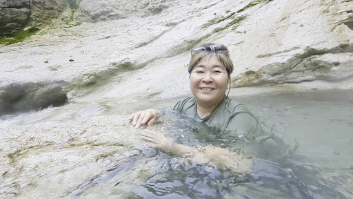Amazing place. Highly recommended for nature lovers and hot spring lowers. The entrance is on the right side of the bathrooms at the parking lot. It is about 500 m. and takes around 15 min descending to get the waterfalls. The origin of the water is near to the parking lot. There is no path to get there. You go through trees and relaxing path. There are spots you can sit to take break of you want. Once you reach the waterfall you feel that you are in the haven and forget everything. There are changing place for males and females. There is a nice spot under the waterfall where you can enjoy the hot spring. Make sure you have suitable outfit. It is forbidden to enter naked. The water temperature is about 40 degrees Celsius here. It gets hotter if you go towards the origin. Have a towel. If you have time go to the opposite side from the parking area to explore the bleached rocks on the top of the mountain. It is open from July to the end...
