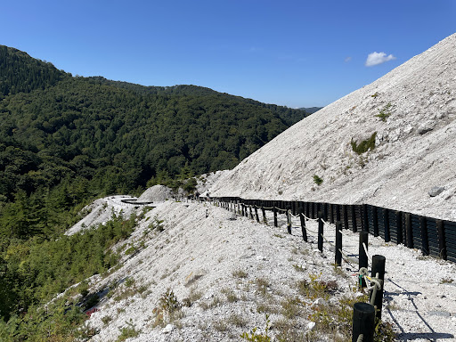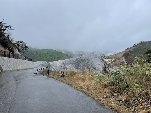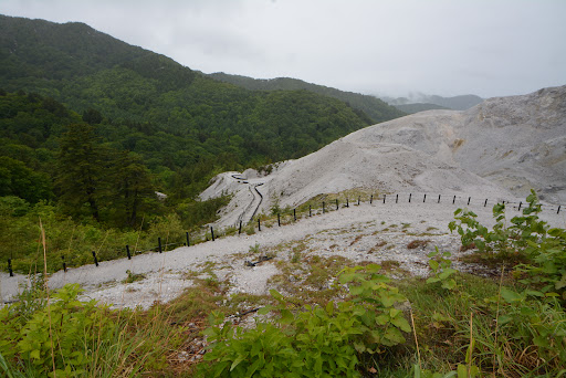 突如現れる荒涼とした地面に驚く。 有毒ガスが噴出しているため、立ち入り禁止区域には絶対に立ち入らないこと。