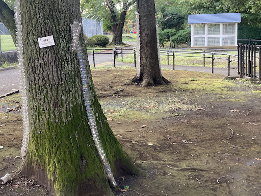 遊具が座間神社をはさんで3箇所に分かれているので、公園内を歩きながら、いろいろな遊具で遊んでいます。