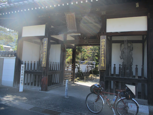 ååœé路第72çªææïœ¢æŒèŒçŸ 寺ã¯ãéŠå·çåé寺åžååã®å¹³å°ã«å»ºã£ãŠããã寺ã§ãã çžèµ·ã«ãããšãåµå»ºã¯ååœéå Žã§æãå€ãæšå€å幎ïŒ596ïŒãè®å²ã®é äž»ã»äœäŒ¯å®¶ã®æ°å¯ºãšããŠåµå»ºãããåããäžå寺(ãããã§ã)ããšç§°ããŠããŸãããåŒæ³å€§åž«ããã®å¯ºã蚪ããã®ã¯åããåž°æããç¿å¹Žã®ããšãæ¯çäŸåŸ¡åã®ä»æè©æãç¥ãããã ã£ããšãããããŠããŸããåã®ééŸå¯ºã«ãªãã£ãŠäŒœèãäžå¹Žãããã§å»ºç«ãæ¬å°ã«å€§æ¥åŠæ¥ãç¥ããåããæã¡åž°ã£ãéåçãšèèµçã®æŒèŒçŸ ãå®çœ®ãã寺åããæŒèŒçŸ 寺ãã«æ¹ããŸããã ãŸããååœéå Žã®å€ãæ¡å æžã«ã¯ã暹霢1200幎ãè¶ ãåŒæ³å€§åž«ãææ€ãã®ãäžèæŸãã®ååšã玹ä»ãããŠããŸããé«ãã¯4ïœè¶³ããã§ããçŽåŸã17ã18ïœããããè ç¬ ããµãã€äŒãããããªå°è±¡çãªå§¿ã§çã®èªç¶èšå¿µç©ã«ãæå®ãããŠããŸãããããããæŸé£ãè«ã«æµžé£ãããå¹³æ14幎ã«äŒæ¡ãããŠããŸãã æŒèŒçŸ 寺ã®è¿ãã«ã¯ãæ°Žèã®äžããšããäžããããŸãããããã«åºµã建ãŠãŠ7幎äœãæ®ãããŠããã®ãè¥¿è¡æ³åž«ããã®å¯ºã«éããæ¬å åã®å¹³ããªç³ã®äžã§ããæŒå¯ãããŠããããã§ããã®ç³ã¯ã西è¡ã®æŒå¯ç³ããšåŒã°ãä»ãåãå Žæã«ãããŸãããŸãããã®æšªã«ã¯ãç¬ ææ¡ããšåŒã°ããæ¡ã®æšãã西è¡ãéœã«åž°ãéãåè¡è ã圢èŠã«ãšæ¡ã®æšã«ç¬ ãããããŸãŸåºçºããã®ãèŠãŠãç¬ ã¯ãããã®èº«ã¯ããã«ãªãã¬ãããã¯ãã¯ããªããããäžããªããšããæãè© ãã ããã§ãã ããã®æ¬¡ã®73çªã¯ãããããå°ãå±±ãäžãã£ãæã§ããå ã«73çªãåæããŠ72çªãåæããããš74çªææã«è¡ãå Žåã¯ãè¡ã£ãéãéŠå·çé48å·ç·ãŸã§æ»ã£ãŠå³ã«æ²ãã£ãŠãã°ããé²ãã§è¡ããšãåå²ç¹ãæãå·Šã«å ¥ã£ãŠã»ã¡ã³ãå·¥å Žãå·Šã«èŠãªã...