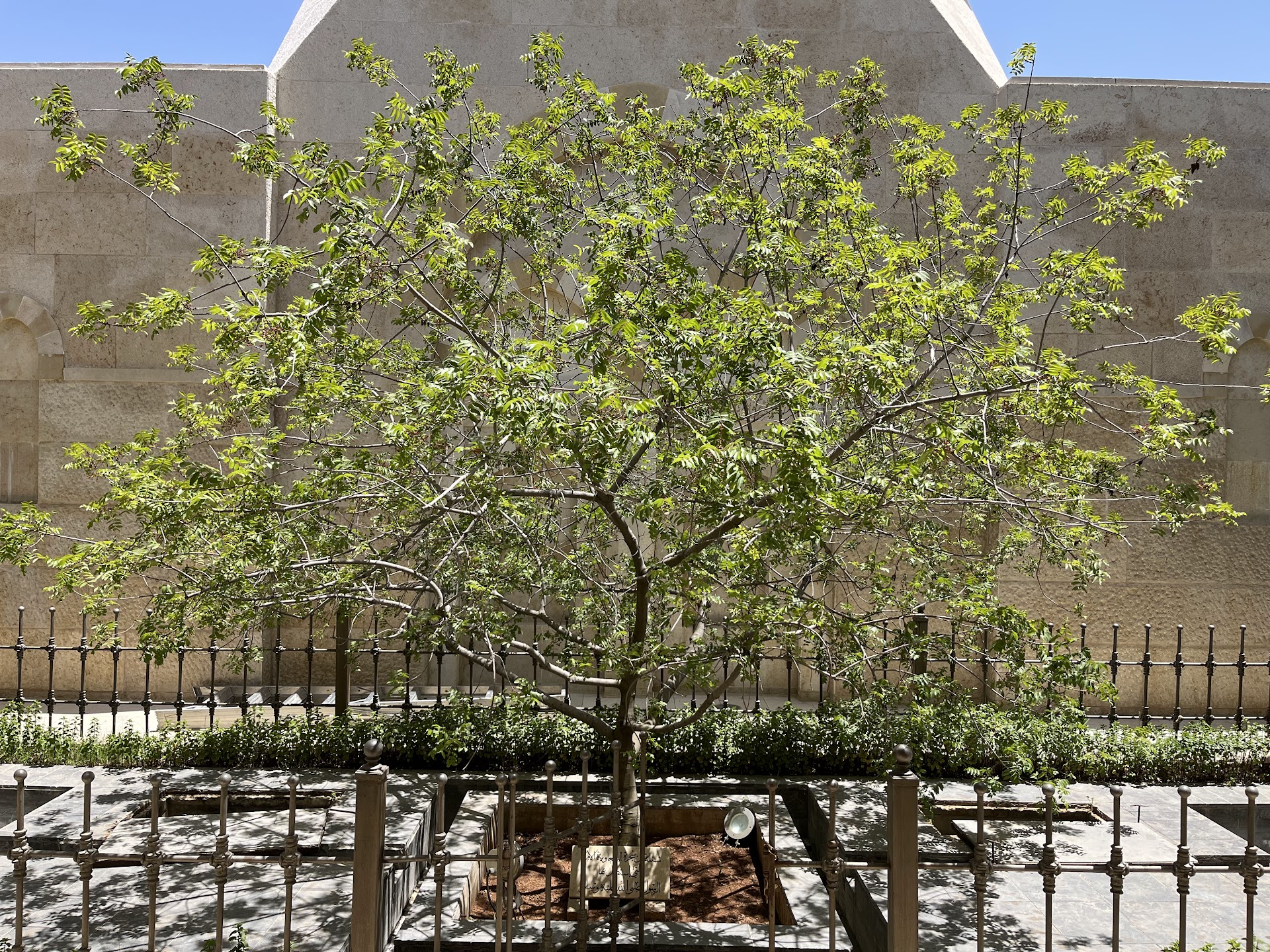 The tree at the entrance was taken from the tree Prophet Mohammed (PBUH) used to shade under in Al-Azraq.