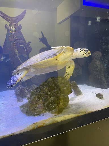 At the entrance you will see a big dirty tank with couple of poor fish in it, next to it you will see a turtle that sit in a shallow very dirty empty tank! That's just abuse (Nice welcoming sign).