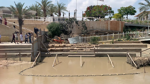 Then there is a walk to Jesusâ baptism site. After that is the walk to the Jordan River. Although the group was very large, there was very little time spent there. People patiently waited to step in the water, as there is only one very small area to do so. You are then herded into a church where you hear another sales pitch to buy souvenirs.