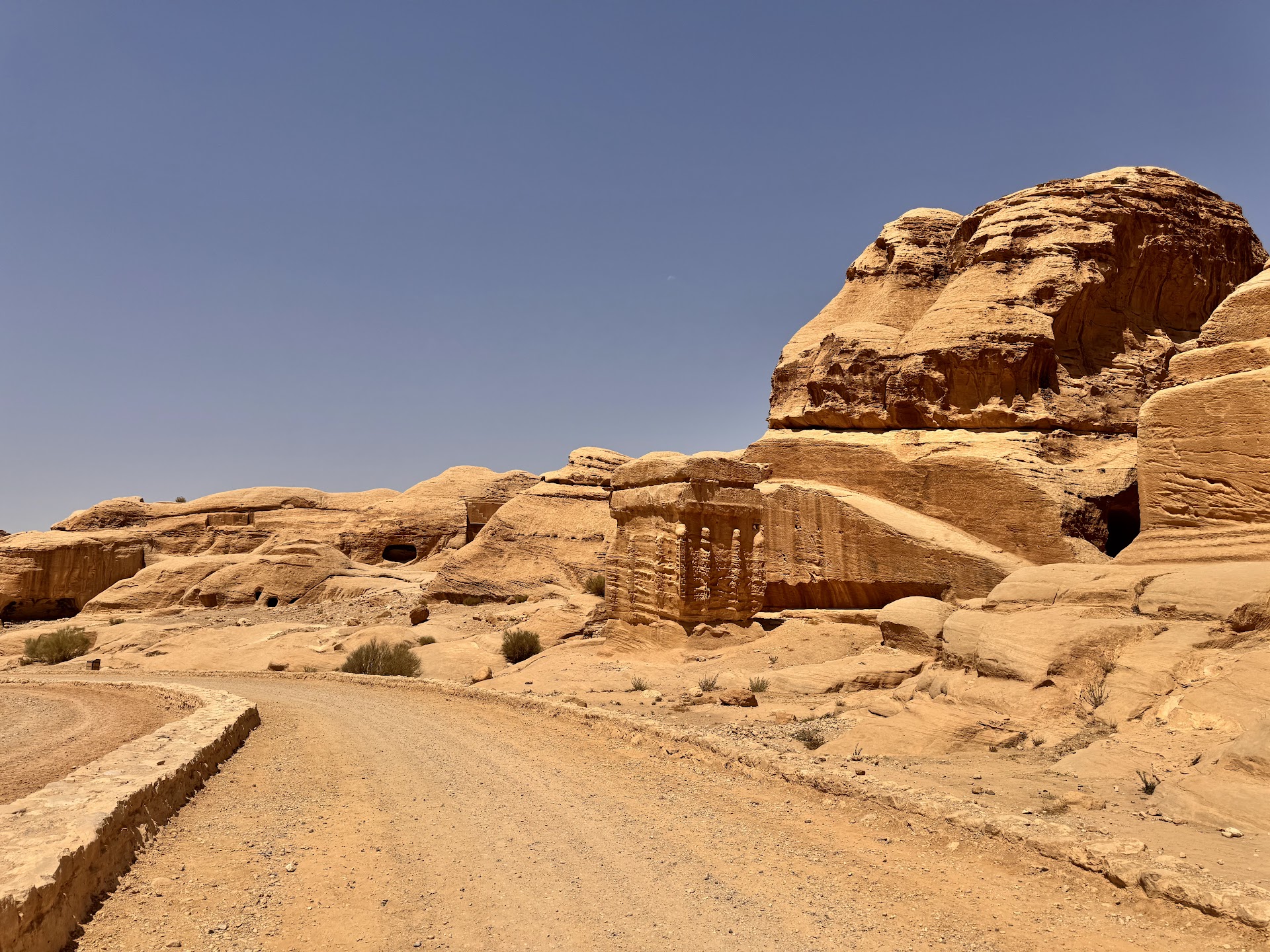Here, you have three (numbers 7, 8 and 9) of the 25 blocks standing in Petra. Further down the path, there is another block visible in the distance above and to the right of the tunnel before the start of the steep descent...