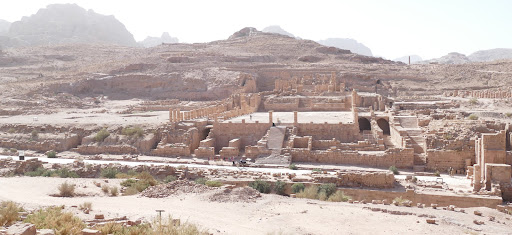 Ce complexe s'étend sur une superficie de 7 560 mètres carrés et est l'un des plus grands bâtiments de Pétra Il dispose d'une immense entrée qui traverse deux cours ouvertes de niveaux et de hauteurs différents. La cour inférieure est large et pavée de tuiles hexagonales, entourée sur les côtés est et ouest par des rangées de trois colonnes, chaque rangée contenant 60 colonnes. Les chapiteaux de ces colonnes sont décorés de sculptures en forme de têtes d'éléphants, symbolisant et exprimant la puissance et la vigueur de la civilisation nabatéenne. Un certain nombre d'entre eux ont été restaurés et sont constitués de pierre calcaire apportée de l'extérieur...