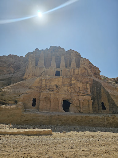 Read moreBetween the Petra Visitor Center and the entrance of the Siq on the south side of the path. The fine tomb with four pyramidal obelisk built as funerary symbols by the Nabateans. The four obelisks, together with the eroded human figure in the center, probably represent the five people buried in the tomb.