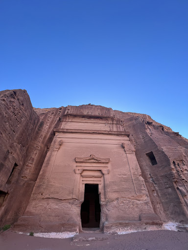 The Tomb of ‘Unayshu’ was built during the second half of the first century AD. It belonged to the minister of the wife of King Maliku II, Queen Shaqilat II. Shaqilat II became regent queen for six years until her son was old enough to rule. Her son then became the last ruler of the Nabatean Kingdom: King Rabel II.